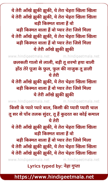 Lyrics of Yeh Teree Aankhe Jhukee Jhukee - ये तेरी आँखे झुकी झुकी