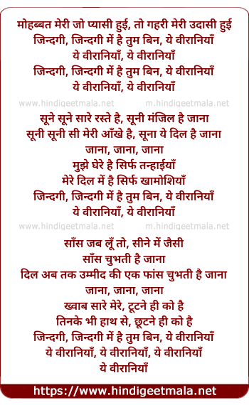 Lyrics of Yeh Viraniya - ये वीरानियाँ