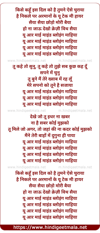 Lyrics of You Are My Mind Blowing Mahiya - यू आर माई माइंड ब्लोइंग माहिया