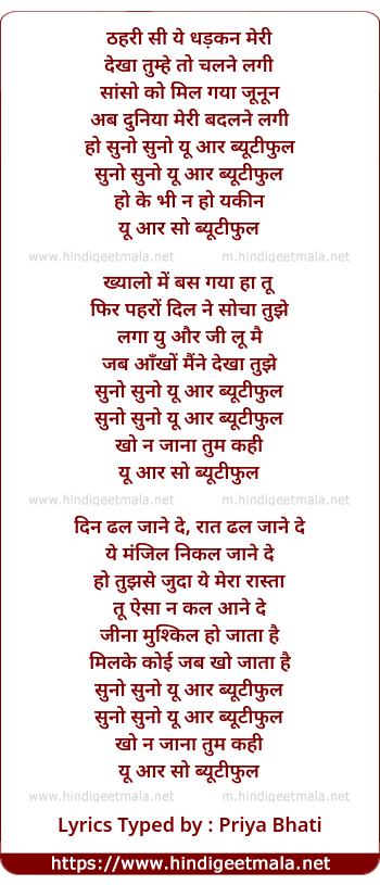Lyrics of You Are So Beautiful - यू आर सो ब्यूटीफुल