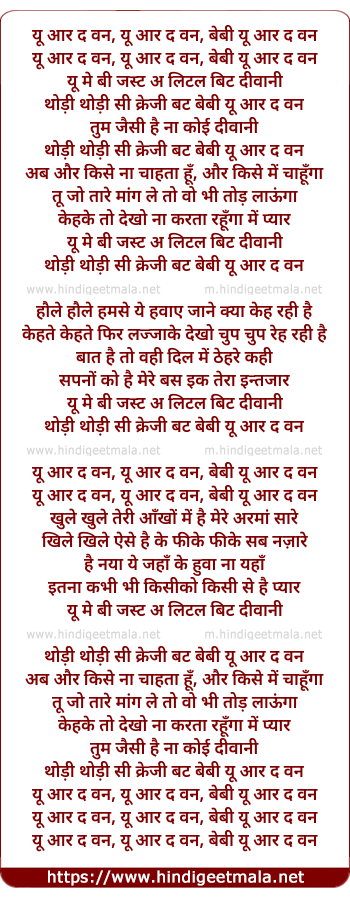 Lyrics of You May Be Just A ,Little Bit Deewaani - यू मे बी जस्ट अ ,लिटल बिट दीवानी