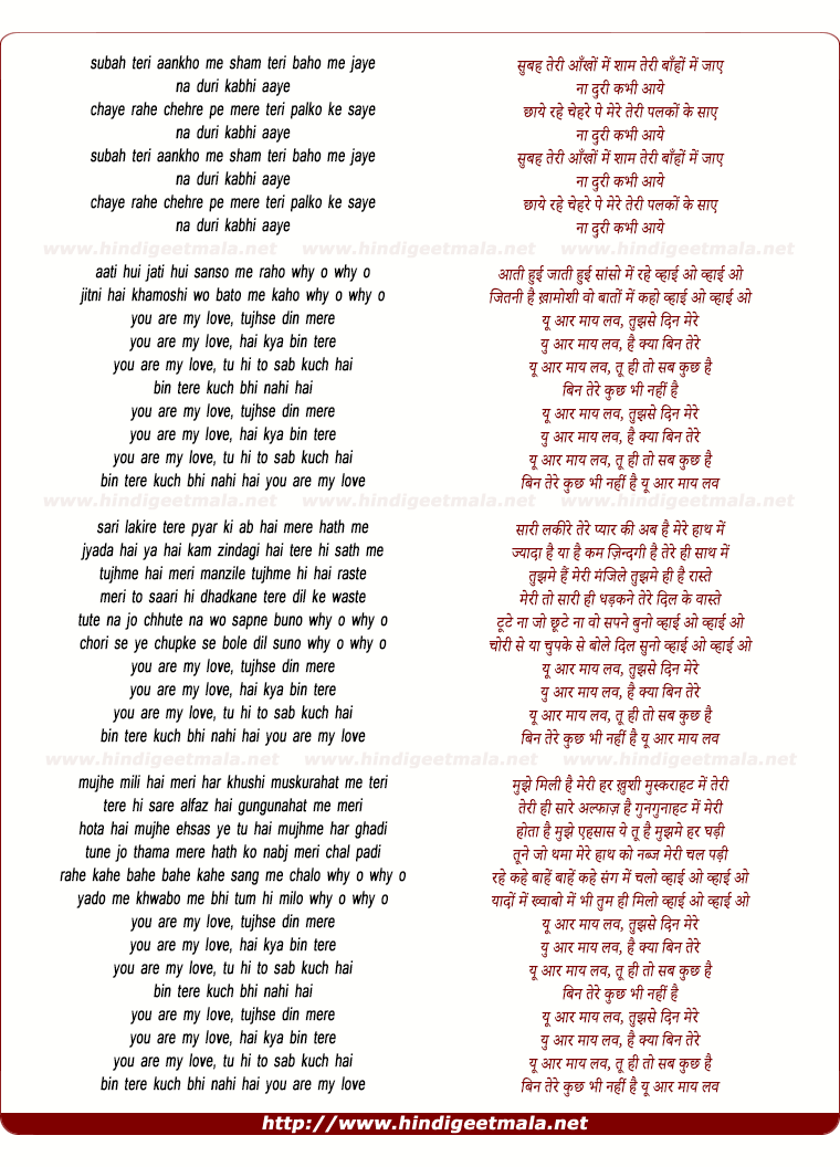Lyrics of You Are My Love - यू आर माय लव