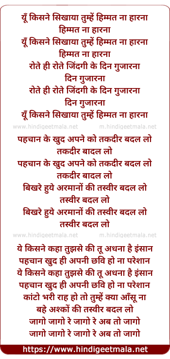 Lyrics of Yu Kisne Sikhaya Tumhe Himmat Na Harna - यूँ किसने सिखाया तुम्हें हिम्मत ना हारना