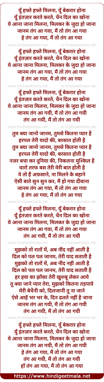 Lyrics of Yun Hafte Hafte - यूँ हफ्ते हफ्ते