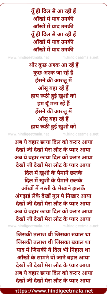 Yun Hi Dil Se Aa Rahi Hai - यूँ ही दिल से आ रही हैं