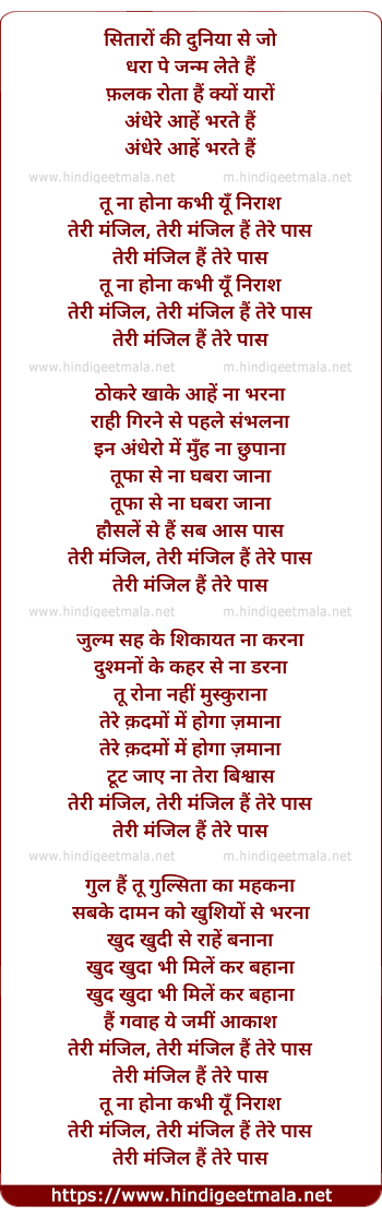 Lyrics of Tu Na Hona Kabhi Yu Nirash - तू ना होना कभी यूँ निराश