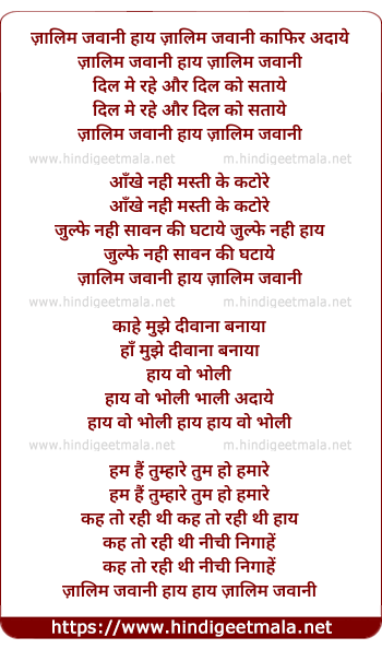 Lyrics of Zalim Jawani Kafir Adaye - ज़ालिम जवानी काफिर अदाये