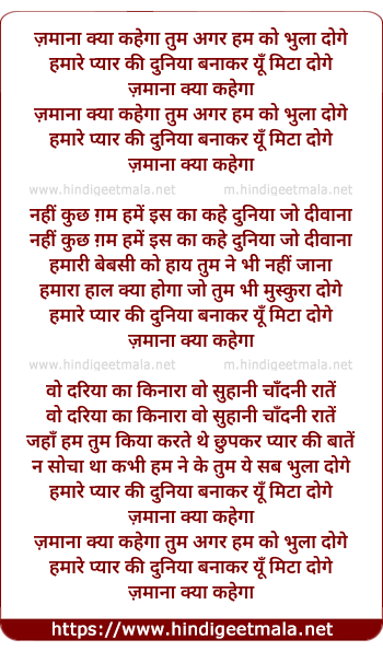 Lyrics of Zamaanaa Kyaa Kahegaa - ज़माना क्या कहेगा तुम अगर हम को भुला दोगे