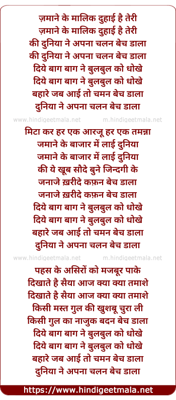 Lyrics of Zamane Ke Malik Duhayi Hai Teri - ज़माने के मालिक दुहाई है तेरी