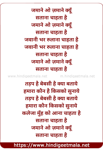 Lyrics of Zamane O Zamane - जमाने ओ ज़माने क्यूँ