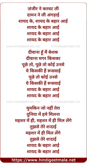 Lyrics of Zanjeer Ne Karvat Li - ज़ंजीर ने करवट ली