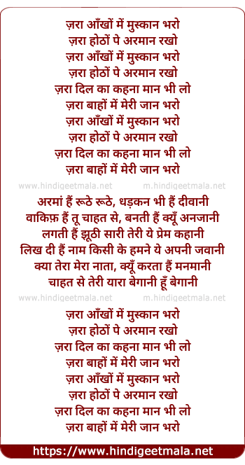 Lyrics of Zara Aankho Me Muskan Bharo (Remix) - ज़रा आँखों में मुस्कान भरो