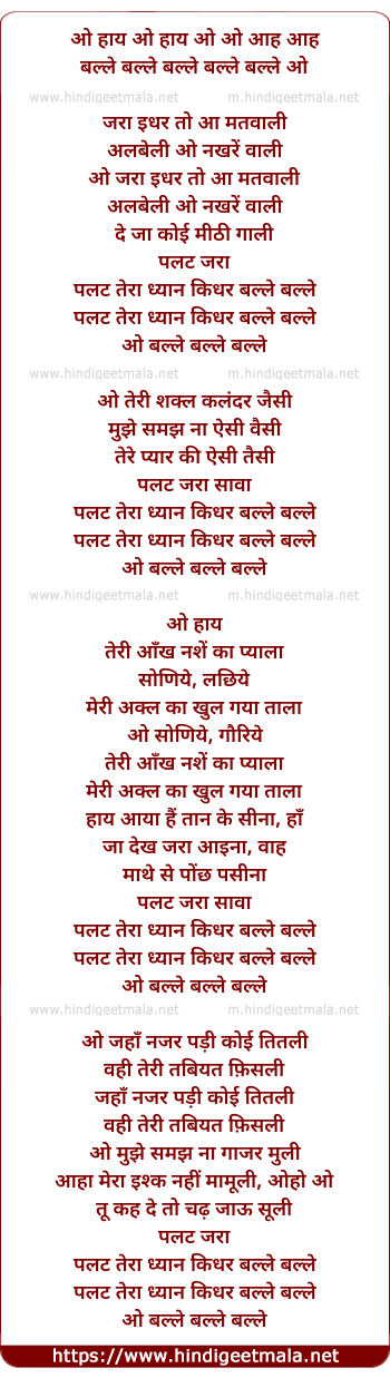 Lyrics of Zara Idhar To Aa Matwali - जरा इधर तो आ मतवाली