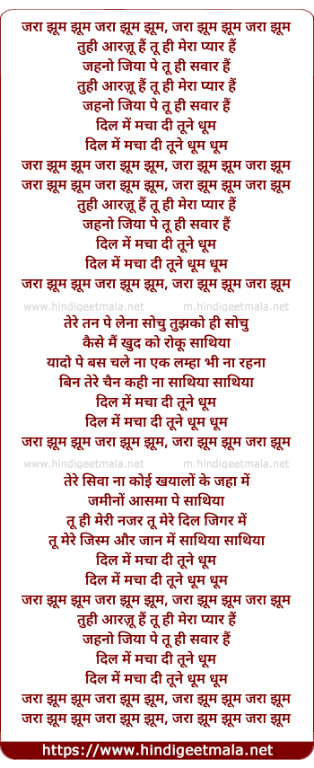 Lyrics of Zara Jhoom Jhoom (Remix) - जरा झूम झूम जरा झूम झूम, जरा झूम झूम जरा झूम