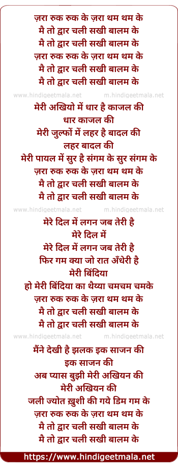 Lyrics of Main To Dwaar Chali Sakhi - मै तो द्वार चली सखी