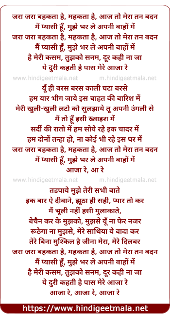 Zaraa Zaraa Bahakataa Hai, Mahakataa Hai, Aaj To Mera Tan Badan - जरा जरा बहकता है, महकता है, आज तो मेरा तन बदन