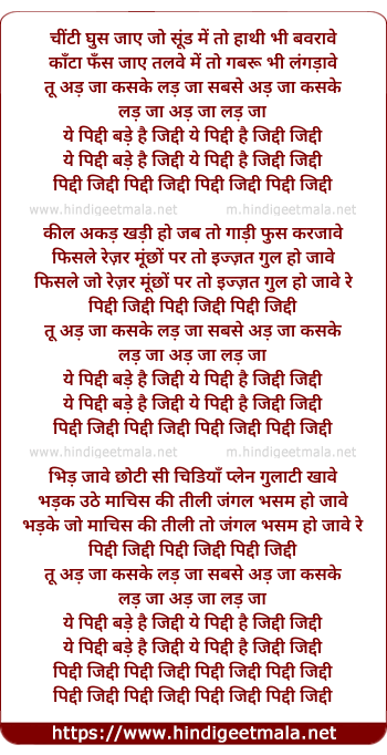 Lyrics of Ye Piddi Badey Hai Ziddi - ये पिद्दी बड़े है जिद्दी