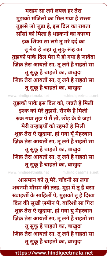 Poetic Translation - Lyrics of Zikr Tera - मरहम सा लगे लफ्ज़ हर तेरा