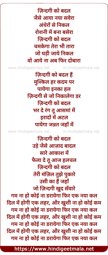 Lyrics of Zindagee Ko Badal - ज़िन्दगी को बदल