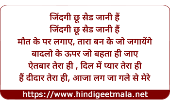 Lyrics of Zindagi - जिंदगी
