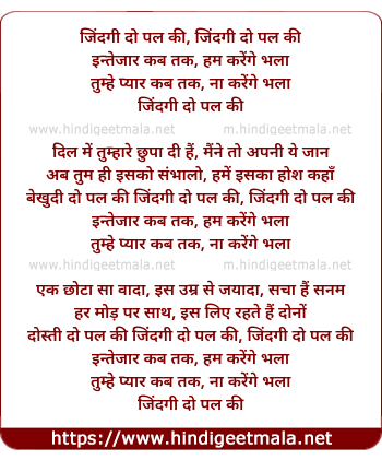 Lyrics of Zindagi Do Pal Ki (Remix) - जिंदगी दो पल की, जिंदगी दो पल की