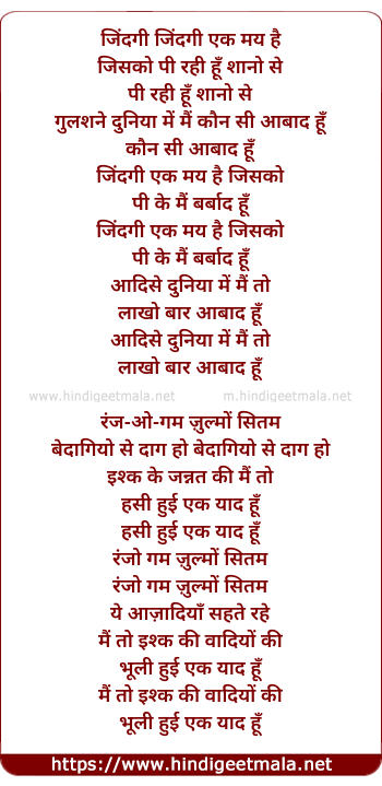 Lyrics of Zindagi Ek May Hai - जिंदगी एक मय है