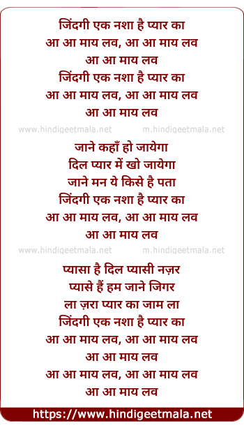 Lyrics of Zindagi Ek Nasha Hai - जिंदगी एक नशा है प्यार का