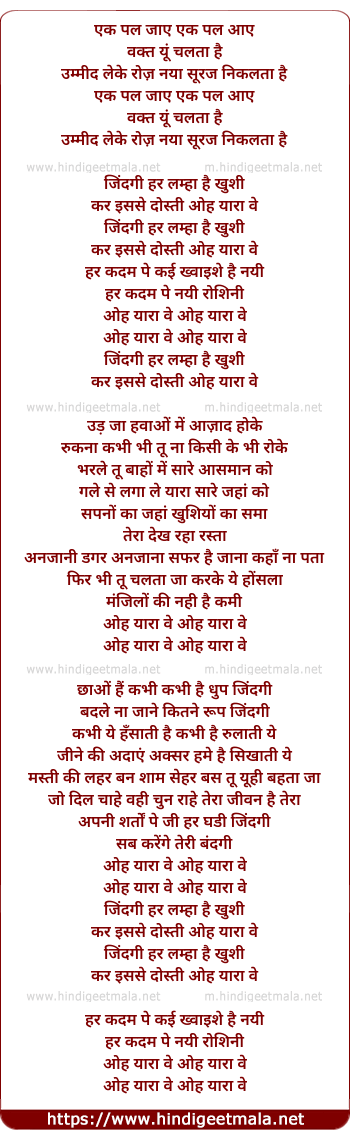 zindagi har lamha hai khushi kar isse dosti oh yara ve
