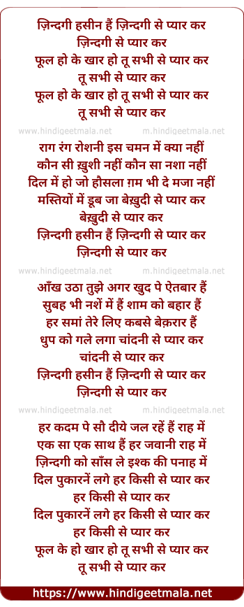 Lyrics of Zindagi Hasin Hai Zindagi - ज़िन्दगी हसीन हैं ज़िन्दगी