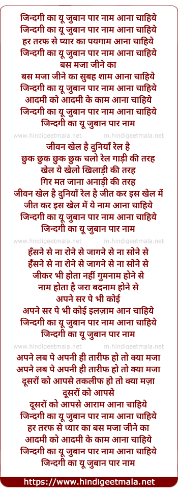 Poetic Translation - Lyrics of Zindagi Ka Yu Zubaan Par Naam - जिन्दगी का यूँ जुबान पर नाम