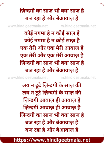 Lyrics of Zindagi Ka Saaz Bhi Kya Saaz Hai - ज़िन्दगी का साज़ भी क्या साज़ है