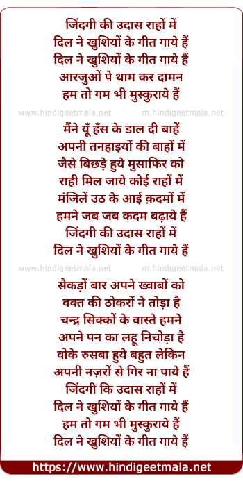 Lyrics of Zindagi Ki Udas Raaho Me - जिंदगी की उदास राहों में