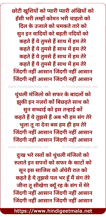 Lyrics of Zindagi Nahi Asaan - छोटी खुशियों को प्यारी प्यारी अंखियों को