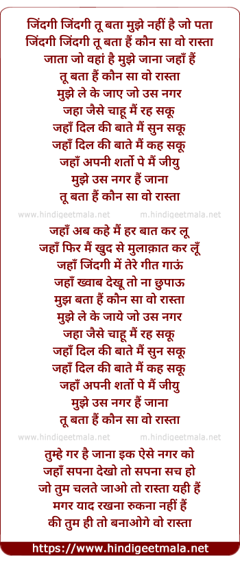 Lyrics of Zindagi Tu Bata Mujhe - जिंदगी तू बता मुझे