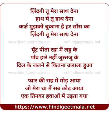 Lyrics of Zindagi Tu Meraa Saath Denaa - ज़िंदगी तू मेरा साथ देना