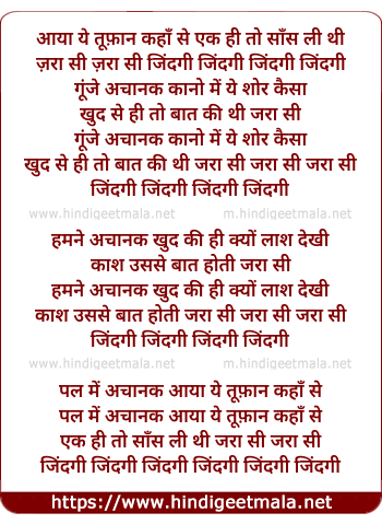 Lyrics of Zindagi Zindagi - जिंदगी जिंदगी