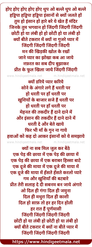 Lyrics of Zindagi Zindagi Chhoti Ho Ya Lambi Ho - जिंदगी जिंदगी छोटी हो या लंबी हो