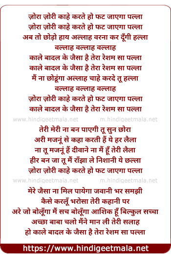Lyrics of Zora Zori Kahe Karte Ho Fat Jayega Palla - ज़ोरा ज़ोरी काहे करते हो फट जाएगा पल्ला